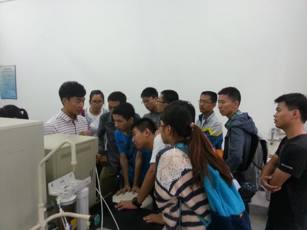在高年级志愿者的引导下,2013级全体新生参观了学院的复合材料、金属材料、信息功能材料、焊接实验室,应化系测试分析实验室,红外隐身材料实验室,核辐射物理实验室,中子实验室等专业实验室。各实验室的指导教师及研究生学长结合自身的科研经历与研究成果就本实验室的研究方向、学生培养和就业前景等几个方面向同学们做了详尽的专业介绍,并对同学们提出的疑问一一进行了解答。