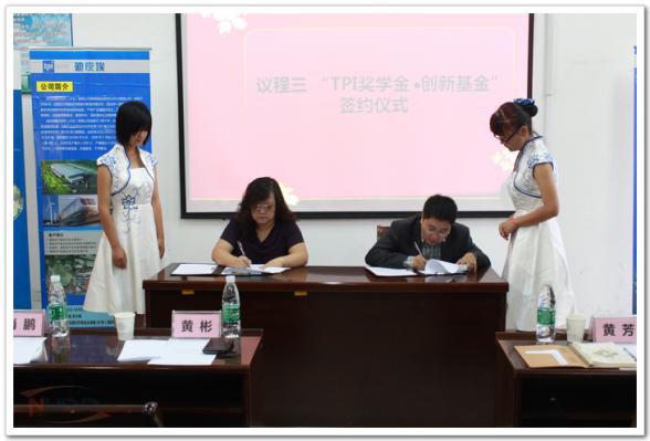 TPI公司代表肖鹏对TPI公司进行了简要介绍,并宣读了每年在我院设立“TPI奖学金”和 “TPI大学生科技创新基金”的决定,也表示非常欢迎南航的优秀学子能加入到TPI大家庭中。黄彬代表材料学院对TPI公司的捐赠表示诚挚的感谢,并向公司作出了郑重承诺,学院必将严格按照学校有关奖学金的管理条例将资金落到实处。同时,学院也将创新人才培养模式,进一步提高学生的学习能力、实践能力、创新能力和综合素质,为企业和社会提供高素质人才。