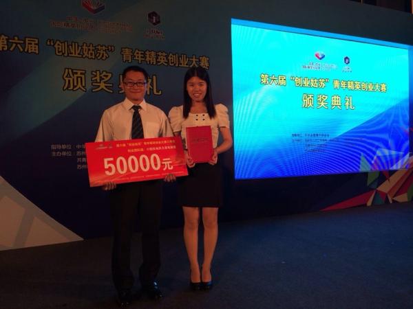 第六届“创业姑苏”青年精英创业大赛,海内外共有566个项目报名参赛,其中脱颖而出的43个优秀项目团队参加了终审答辩。主办方邀请的7名终审答辩评委分别从项目意义、知识产权、技术水平、市场前景、管理能力、资金筹措、实战情况等多个方面对入围终审的项目进行全面评估考量。最终我院选送的该件作品经过层层选拔,在学校、学院、指导老师、参赛学生的共同努力之下,在众多参赛作品中脱颖而出,荣获佳绩。