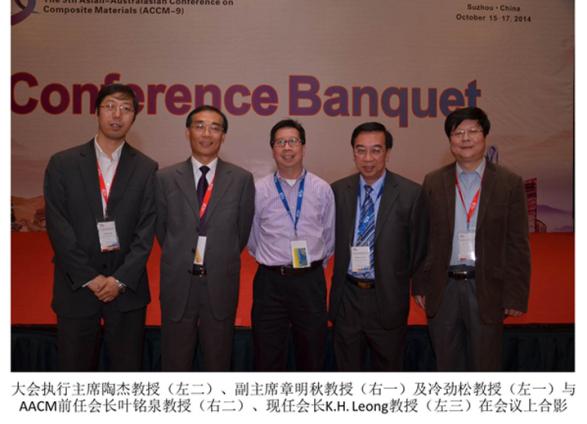 2014年10月15日-17日,由亚澳复合材料学会(The Asian-Australasian Association for Composite Materials,AACM)主办,中国复合材料学会、365上市公司官网、江苏省复合材料学会、南京工业大学和江苏先进无机功能复合材料协同创新中心联合承办的第九届亚澳复合材料会议(The 9th Asian-Australasian Conference on Composite Materials ,ACCM-9)在苏州隆重召开。