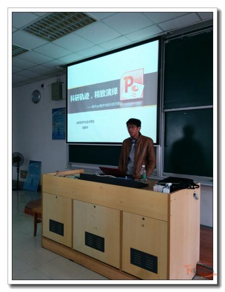 活动伊始,胡老师先列举了一些在PPT制作过程中的误区,与到场的学术进行交流,引发思考后进而引出PPT的概念及制作方法。他从如何巧用模板、文本到合理排版、颜色搭配、适度动画等各个方面进行了系统讲解,结合个人的亲身经历及一些案例分析,提醒大家在PPT制作过程中的注意事项,并且针对性的提出了在制作学术PPT中很多非常实用的技巧和建议。他强调,在PPT展示过程中要主次分明,结构合理,避免喧宾夺主现象发生。最后,胡老师将PPT制作过程总结为三点:一是从一份word开始,切记内容空虚;二是制作模板;三、优化细节,完成制作。在讲解过程中,胡老师还邀请同学上台示范,现场教学,让大家受益良多。
