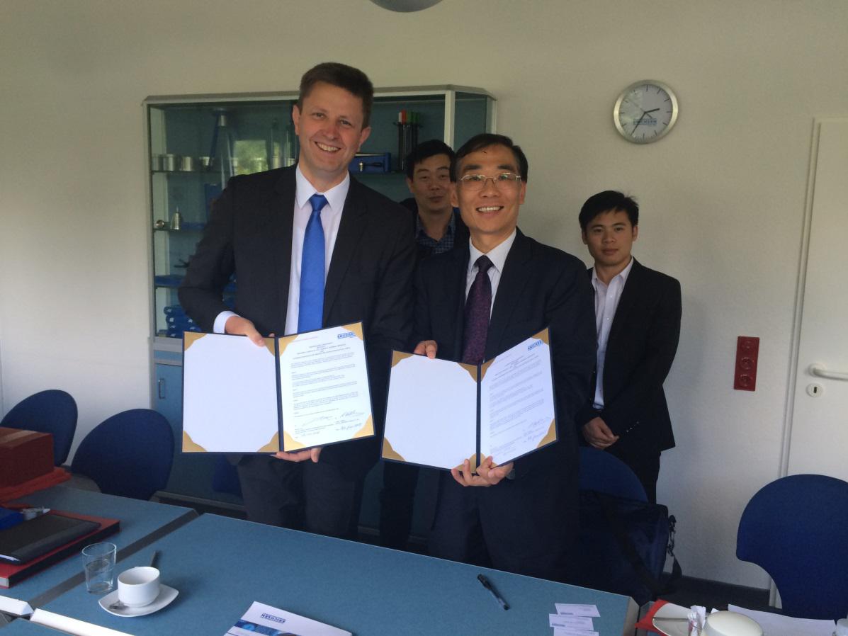 6月8日上午,陶杰教授一行赴ERICHSEN公司参加中德2015板材成形性能评价学术合作论坛。陶杰教授、郭训忠副教授详细介绍了365上市公司官网在板材成形领域的研究进展。报告结束后,ERICHSEN公司与南航就具体的合作形式进行了讨论与交流并达成一致,初步拟定双方建立塑性成形联合研究室,在板材成形性能评价技术、成形设备研发领域建立长期的合作关系。最后,双方举行了战略合作协议签字仪式。下午,陶杰教授一行参观了公司生产部门,详细了解板材成形性能评价的整个过程,包括试样制备、影像采集、判断标准及数据处理,相关的技术人员进行了现场操作,并进行了详细讲解。