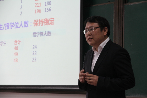 学院副院长顾冬冬就研究生招生、培养,国际化工作计划进行了介绍,就即将开展的研究生招生工作改革进行了说明,并对学院畅通国际合作渠道、搭建国际化合作交流平台、增加学生国际访学交流机会等工作进行了重点介绍。
