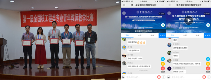 本次培训期间还举办了第一届“全国核工程类专业青年教师教学比赛”,邀请教指委委员、教指委顾问、特邀专家担任评委,分为预赛和决赛两个阶段。预赛阶段,评委根据参赛教师提交的“教学设计”、教案等材料从教学目的、思路设计、教学分析、教学方法策略等方面进行了严格评审,经无记名投票,遴选出决赛选手。经过7个多小时的激烈角逐,最终评选出一等奖5人、二等奖7人、优胜奖8人。教学比赛过程进行了全程网络直播,6100余人通过网络观看了比赛并进行了互动交流,获广泛关注和好评。我院核科学与技术系贺晓涛老师和庄坤老师分别获得一等奖和二等奖,耿长冉老师和何庆华老师获得优胜奖。