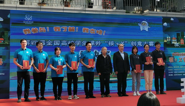 本届大赛共有24所高校报名,经过校内选拔后提交作品104件。由大赛组委会专家评选出7件作品入围总决赛,参加一二等奖的现场角逐。通过入围作品播放、创作团队讲解、院士专家提问、打分等环节,本届大赛的一二等奖于现场揭晓。我校核工程类专业学生尹宇莹、周婉仪创作的《核ta说—辐照加工大求真》荣获大赛一等奖。屈政哲、王茸、黎韦创作的《今夕“核”夕—放射性同位素电源大揭秘》荣获大赛二等奖。