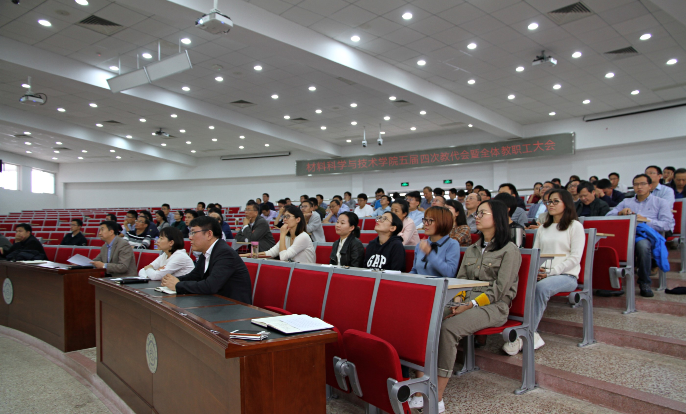 2019年10月12日下午14:00,材料科学与技术学院召开了第五届四次教代会暨全体教职工大会。学院全体领导班子及全体教职工参加了会议。会议由院党委副书记、工会主席许赞同志主持。