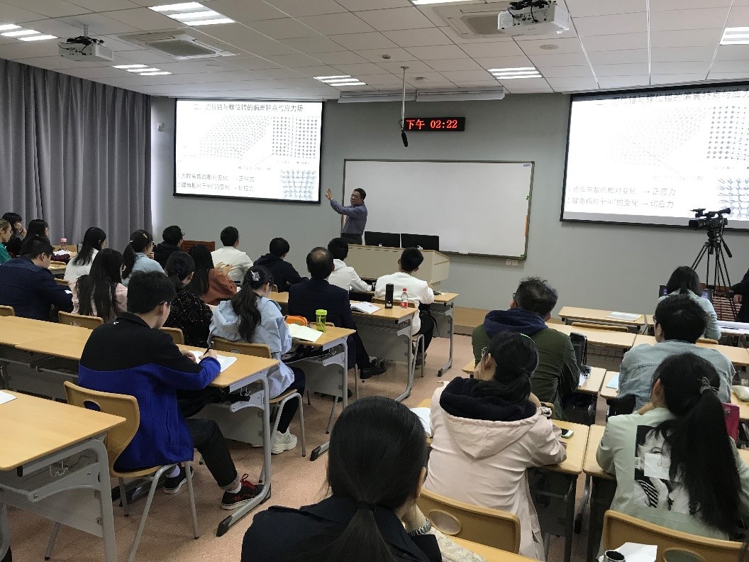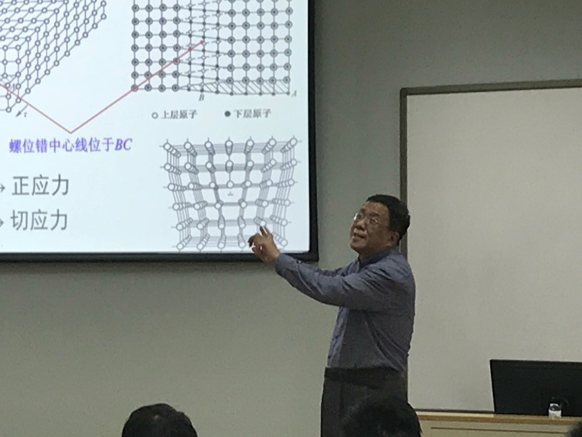 吴教授非常注重讲课的逻辑性和系统性,课堂上,他巧妙地构建出形象化的晶体缺陷知识结构图,并逐步展开,分析各知识点之间的关联性,归纳分析线缺陷与面缺陷之间的共性和区别,最后再对知识进行概括总结,使得整个知识体系逻辑清晰、连贯通畅。吴教授精彩的讲授吸引了在场的所有师生,同学们积极思考、踊跃提问,吴教授耐心分析、一一解答,形成了良好的课堂互动氛围。