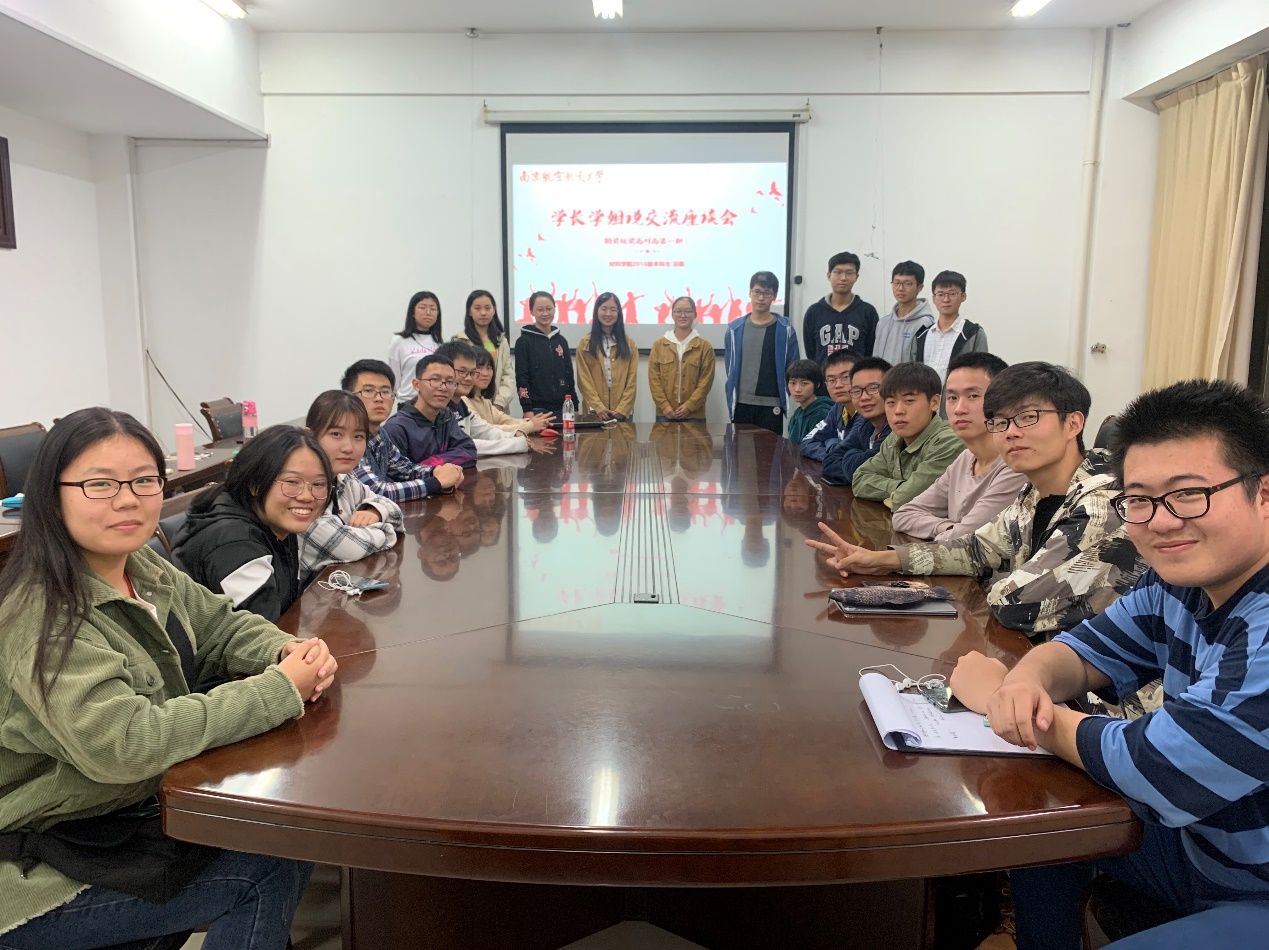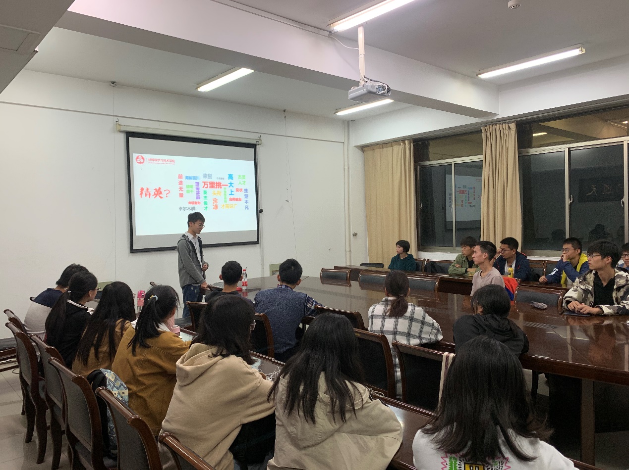 为进一步发挥本科生朋辈导师的“传、帮、带”作用,培养低年级本科生独立思考,科学规划的能力,11月16日晚,我院第十四期“学长学姐说”交流会在材料楼259会议室成功举行。交流会上,学院0616100班班长,2016-2017学年、2018-2019学年国家奖学金获得者宗旸与低年级本科生分享他的国家奖学金之路。