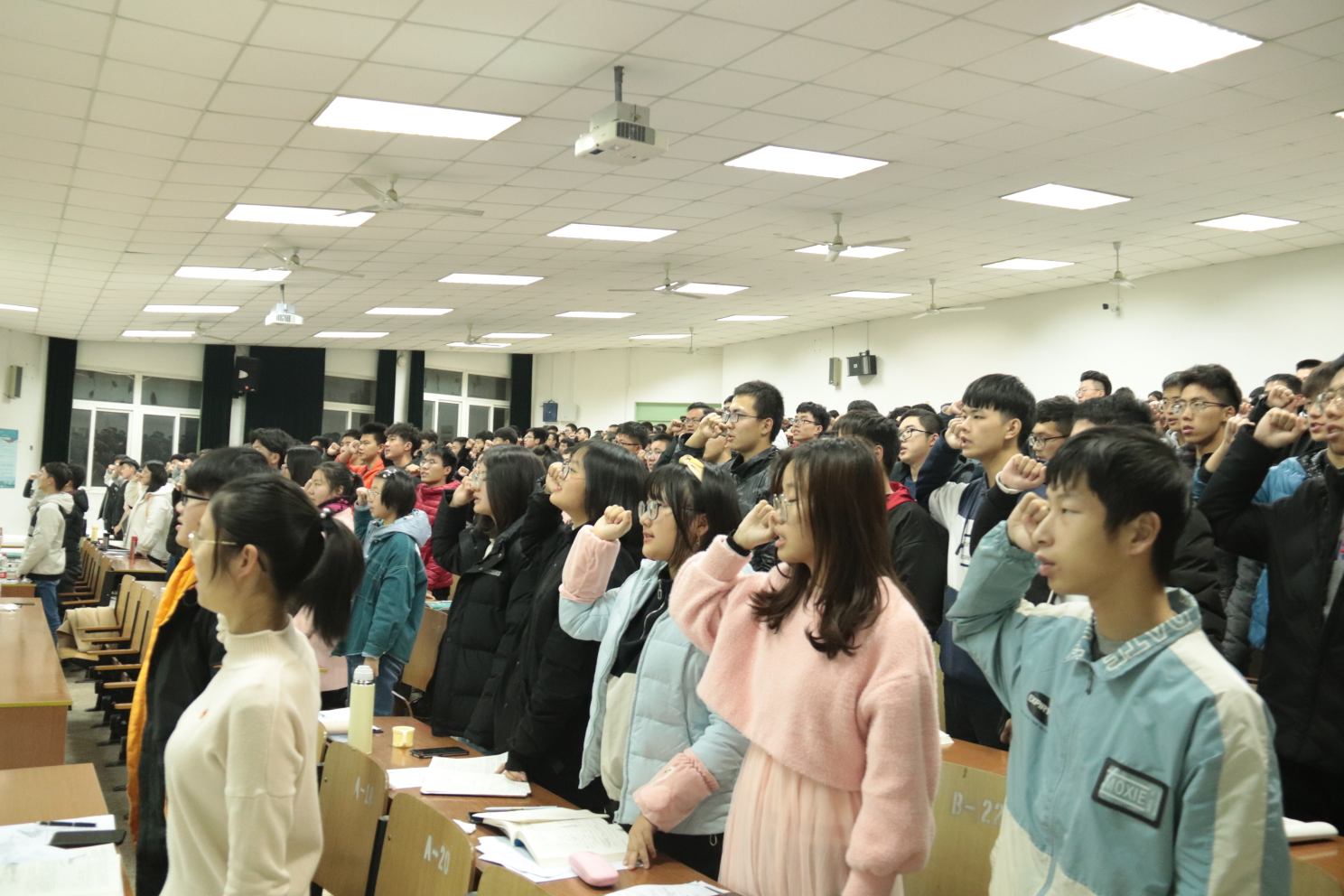 2019年12月13日,英国365集团一二·九主题新生团课在4301开讲。英国365集团团委书记李科艳,2019级辅导员张进鹏以及2019级全体同学共同参加了本次团课。
