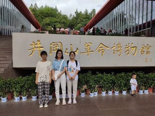 曾怡兰、黄玉、刘诗婷三位同学则前往团中央井冈山教育基地实地参观学习,探访了烈士陵园、毛泽东旧居和井冈山革命博物馆三个红色基地。她们深刻体会到了老一辈革命家革命道路的艰辛,胜利果实是由汗水、泪水和血水浇灌而成,来之不易。在参观的过程中,一名西安交通大学的辅导员与她们介绍到:当代大学生的思政理念有个明显的特点,“知道艰苦奋斗,不知为何;知道坚定理念,又不知如何”。曾怡兰同学听后不由反思道,“我们在接受思政教育的时候,不能浮于表面地去学习其理论,而是要知其然也应知其所以然,更要亲身付诸于实践。”