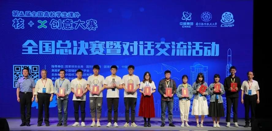 在“核+X”创意大赛总决赛环节,通过入围作品播放、创作团队讲解、院士专家提问、打分等,现场评选出本届大赛的一二等奖作品。共7件作品入围总决赛,其中我校参赛作品《钢铁侠“核”你探寻聚变奥妙》(参赛学生:栗鼎然、崔学健、陈宇生、黄坤;指导教师:贺晓涛、何庆华)获得一等奖,《空间堆与核电池——为核梦起航,以核览星芒》(参赛学生:杨思、李震、李卓耀、韩明明;指导教师:庄乃亮、刘云鹏)获得二等奖。与此同时,活动开通了网络直播,在线人数近一万三千人,并由场外观众投票产生最佳人气奖。