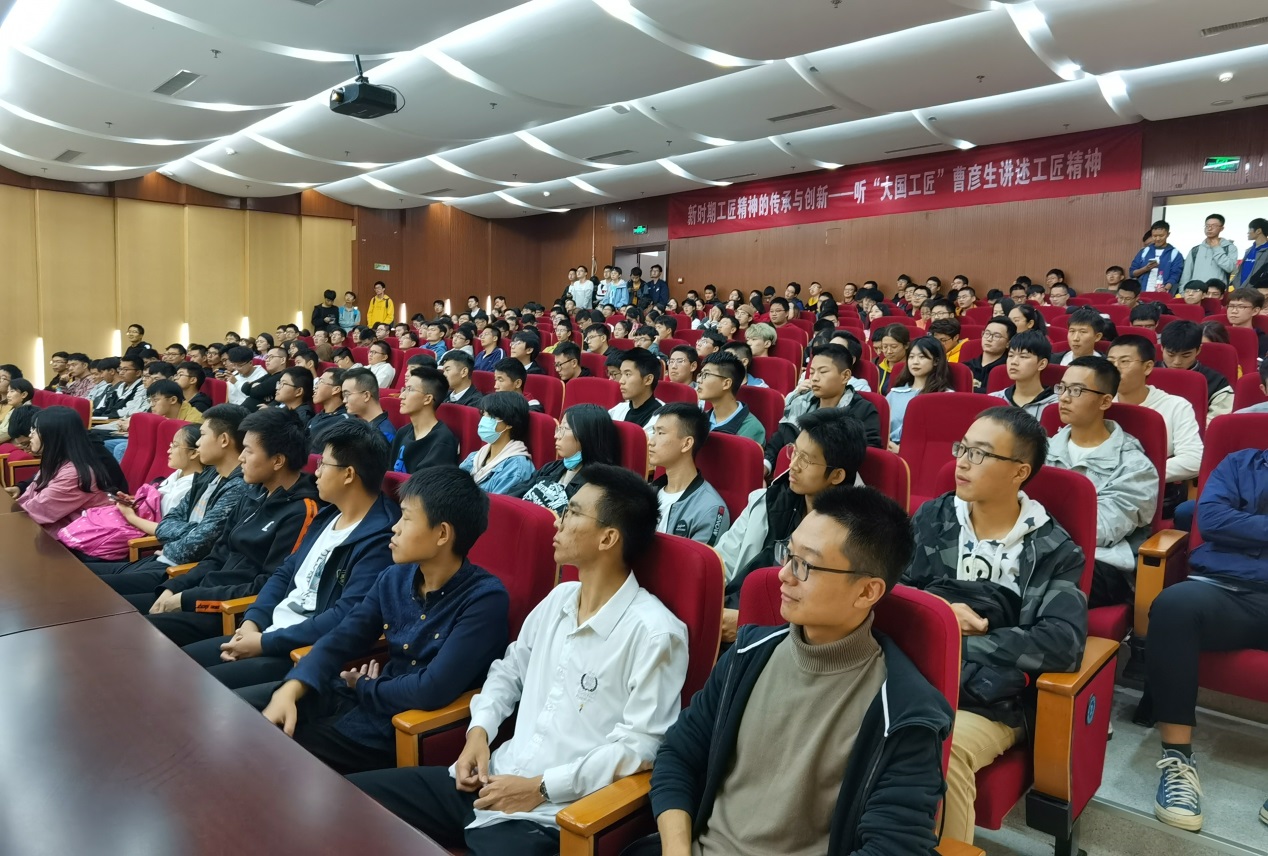 本次讲座以一段新闻联播《大国工匠,匠心报国》的报道视频开始,视频向我们展示了曹彦生匠心报国的真实例子。曹彦生对“工匠精神”的执着追求,对超凡品质的主动探寻让现场的每一位师生倍感鼓舞。