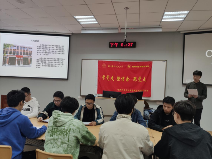 本次活动是关于1927年“中共五大”、“南昌起义”、和“八七会议”的相关党史学习。会议伊始,0620团总支书记张中阳首先为大家讲解了三个重要事件的历史背景,发展经过,以及其在这个重要历史节点对我党发展的深刻意义。在讲到南昌起义时,他分享了南昌起义前朱德宴请滇军的几位团长,确保起义成功的故事,详细讲解了南昌起义的作战将领、进攻路线和起义过程中遇到的种种困难,分析了“为何党的起义要选在南昌”这个重要问题,加深了参与学习的同学们对南昌起义的理解。在讲到“八七会议”时,他为同学们列出了“为何决定武装起义八七会议在后,而南昌起义在前”的几点原因,介绍了当时条件下 “八七会议”召开之不易。