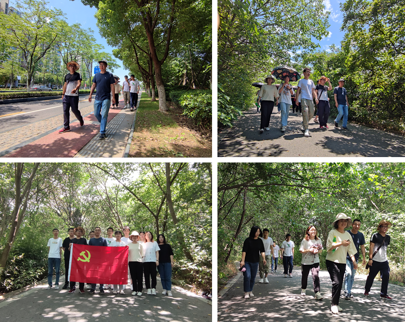 全体人员于13:00准时在江宁校区集合完毕。学生支部书记李少鹏对徒步路线和进行了详细说明。时值初夏,天气晴朗,阳光明媚。绿道旁树影交错纵横,登上翠屏山,视野开阔,树丛掩映,尽览山色湖景,亦可远眺江宁城市轮廓。在紧张的科研与学习之余享受到了绿水青山的新鲜空气,释放了压力。