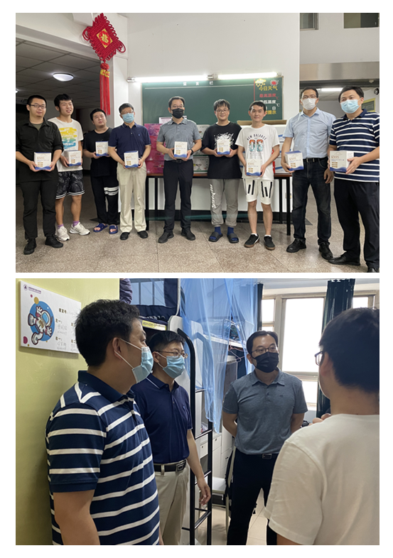 为进一步舒缓疫情给学生们带来的心理压力,学院领导们在慰问出发前,为在校学生们精心准备了水果、口罩等物资,搬运到学生宿舍,送到同学们的房间。院领导关心询问同学们疫情期间的饮食、作息、学业等情况,并叮嘱同学们保持良好心态,平衡好生活和学习、科研,积极利用线上方式解决学业难题、全面提升自我。