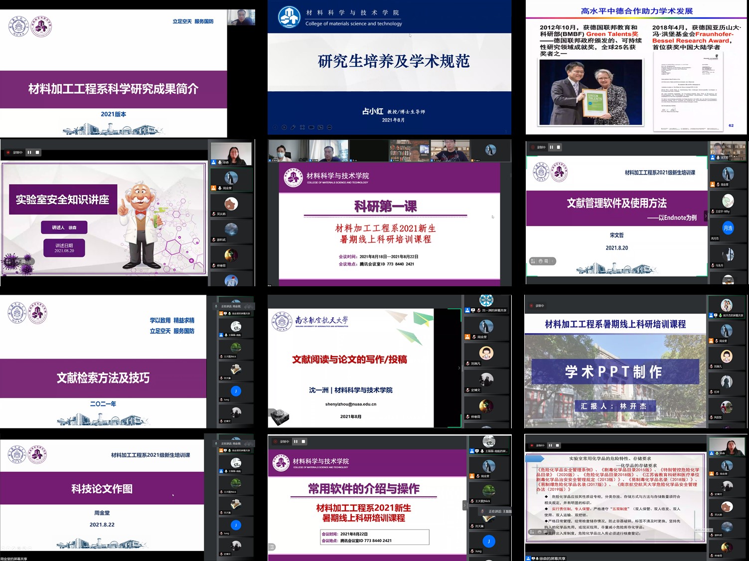 疫情当前,在这个特殊的暑假,材料加工工程系对2021级研究生主动关怀,积极组织了包括材料加工工程系科研成果简介、科研工作方法及程序、研究生培养及学术规范、实验安全知识、文献检索方法及技巧、文献管理软件及方法、文献阅读与论文写作/投稿等丰富的暑期课程,为提升材料学院新生的科研素养提供了丰富的资源,共计200多名学生参与了此次课程学习。