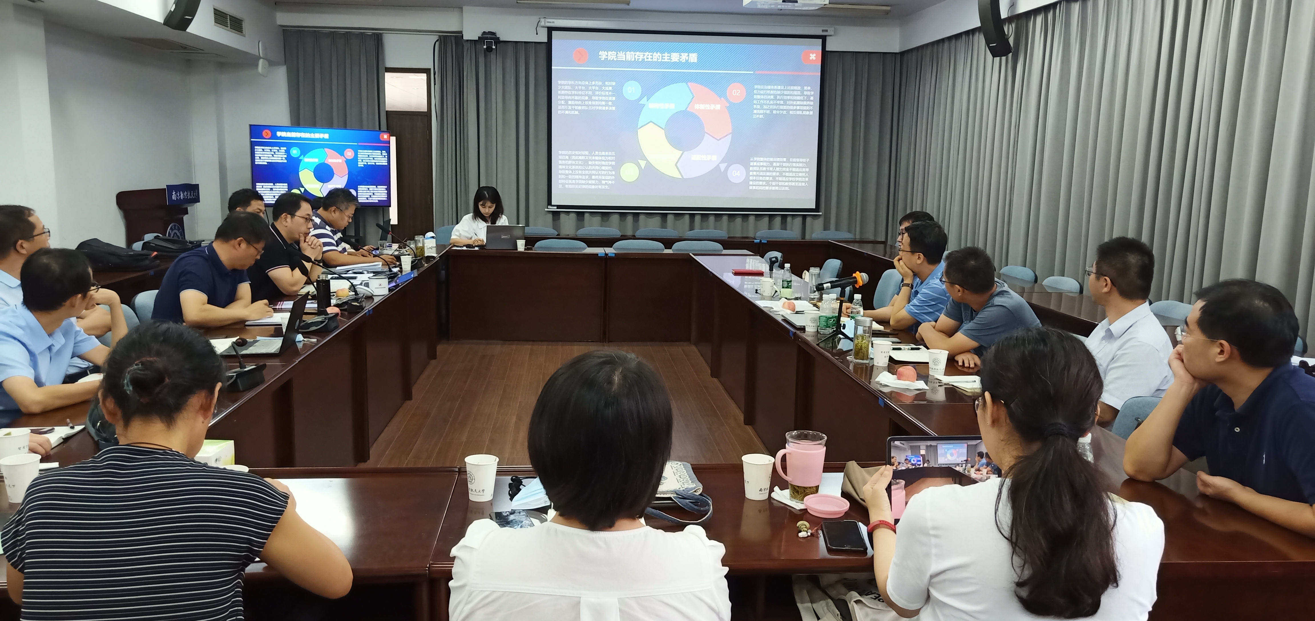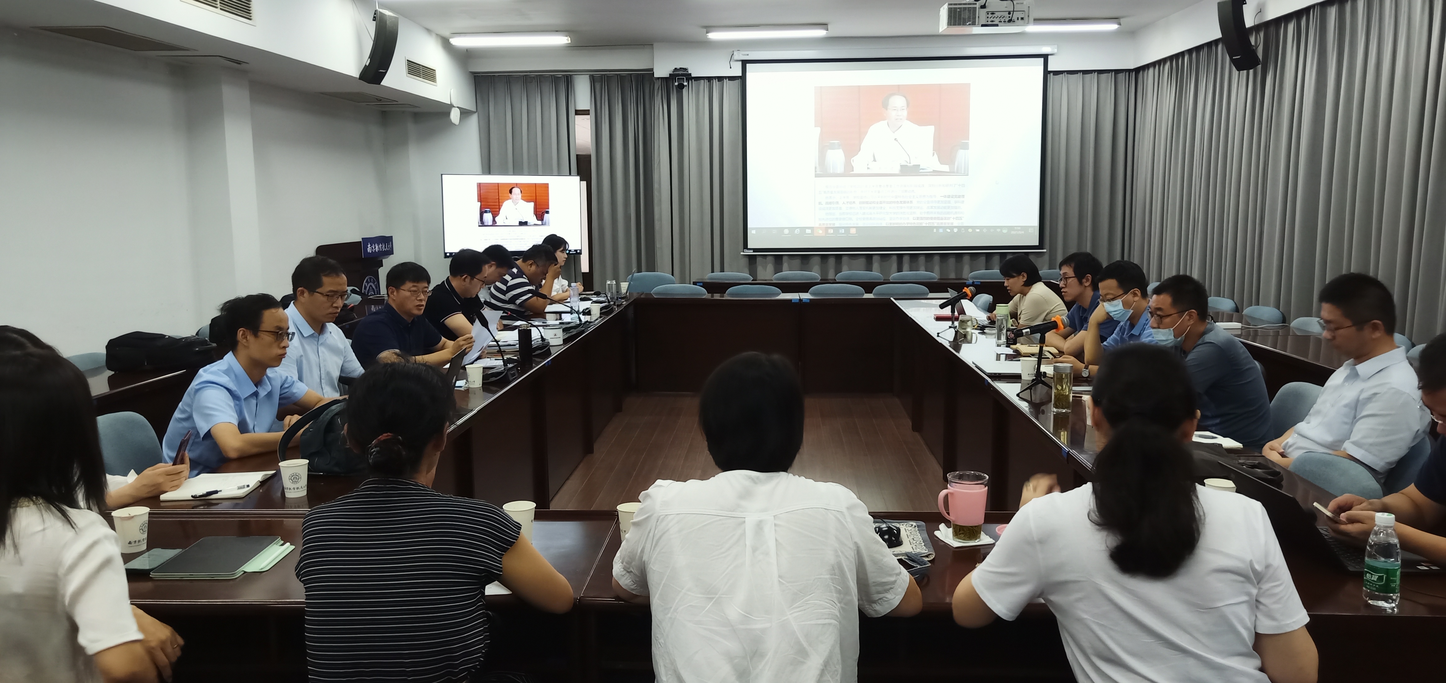 在交流研讨环节,学院领导班子、院长助理,各系主任、党支部书记结合分管工作展开对标找差,对下半年及十四五前期重点工作及实施路径进行了充分地讨论和展望。