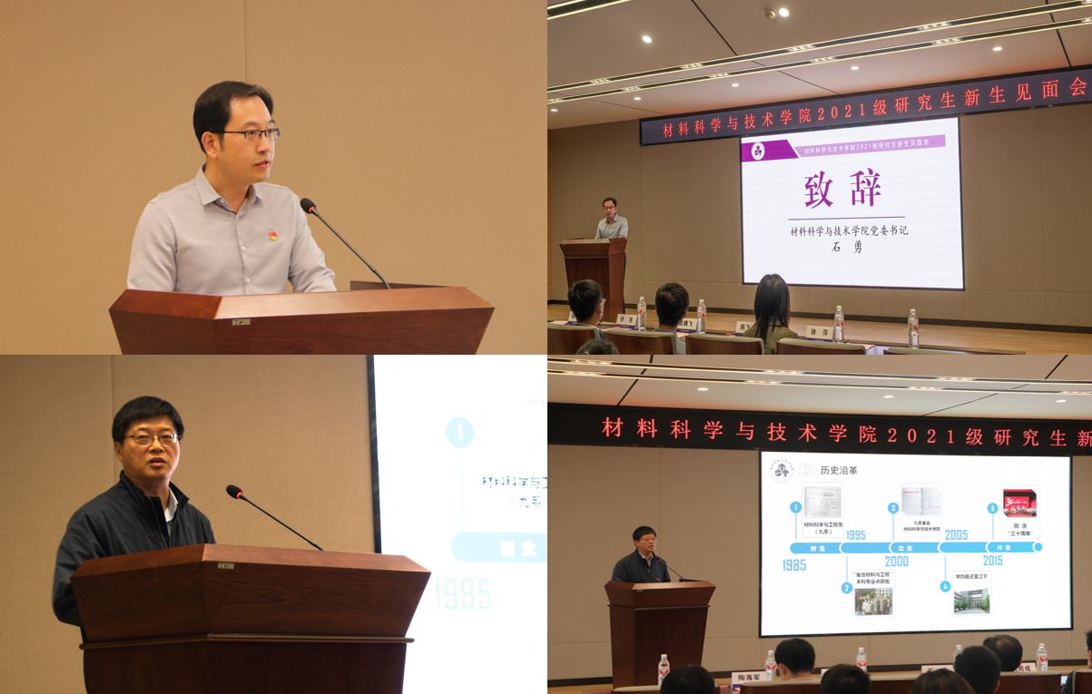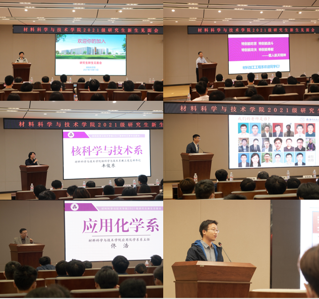 2021年10月12日至10月13日,英国365集团2021级研究生新生见面会于院楼D10的B501教室召开。学院党委书记石勇、院长张校刚、副院长陶海军、副院长刘周成、院长助理冯晓梅、材料加工工程系系主任郭训忠、应用化学系系主任佟浩、材料科学系系主任杨亮、材料科学系系副主任张腾飞、核科学与技术系系副主任陈飞达、核科学与技术系教工党支部书记丰俊东、学院团委书记徐萍及各年级研究生辅导员出席了会议。党委副书记许赞主持大会。2021级全体研究生新生分两个场次参加了会议。