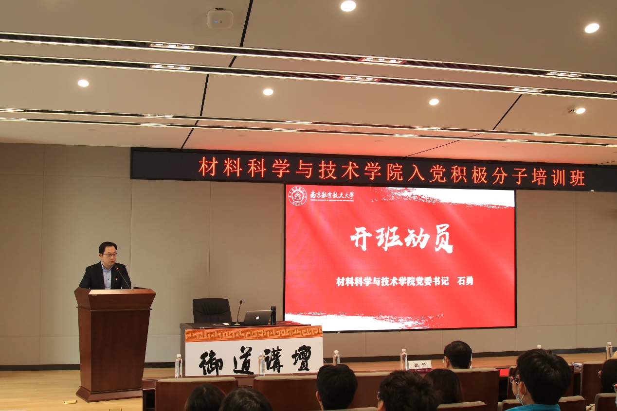 首先,石勇在开班仪式上作了讲话,他首先表示,看到这么多青年同学以极高的政治热情向党组织靠拢,渴望加入党组织,愿为党的事业奋斗终身感到欣慰。他提出,希望同学们通过学党史,听党课,进一步端正入党动机,进一步坚定理想信念,真正做到从思想上入党,从行动上入党,时刻对照党员标准严格要求自己,争取早日加入中国共产党。