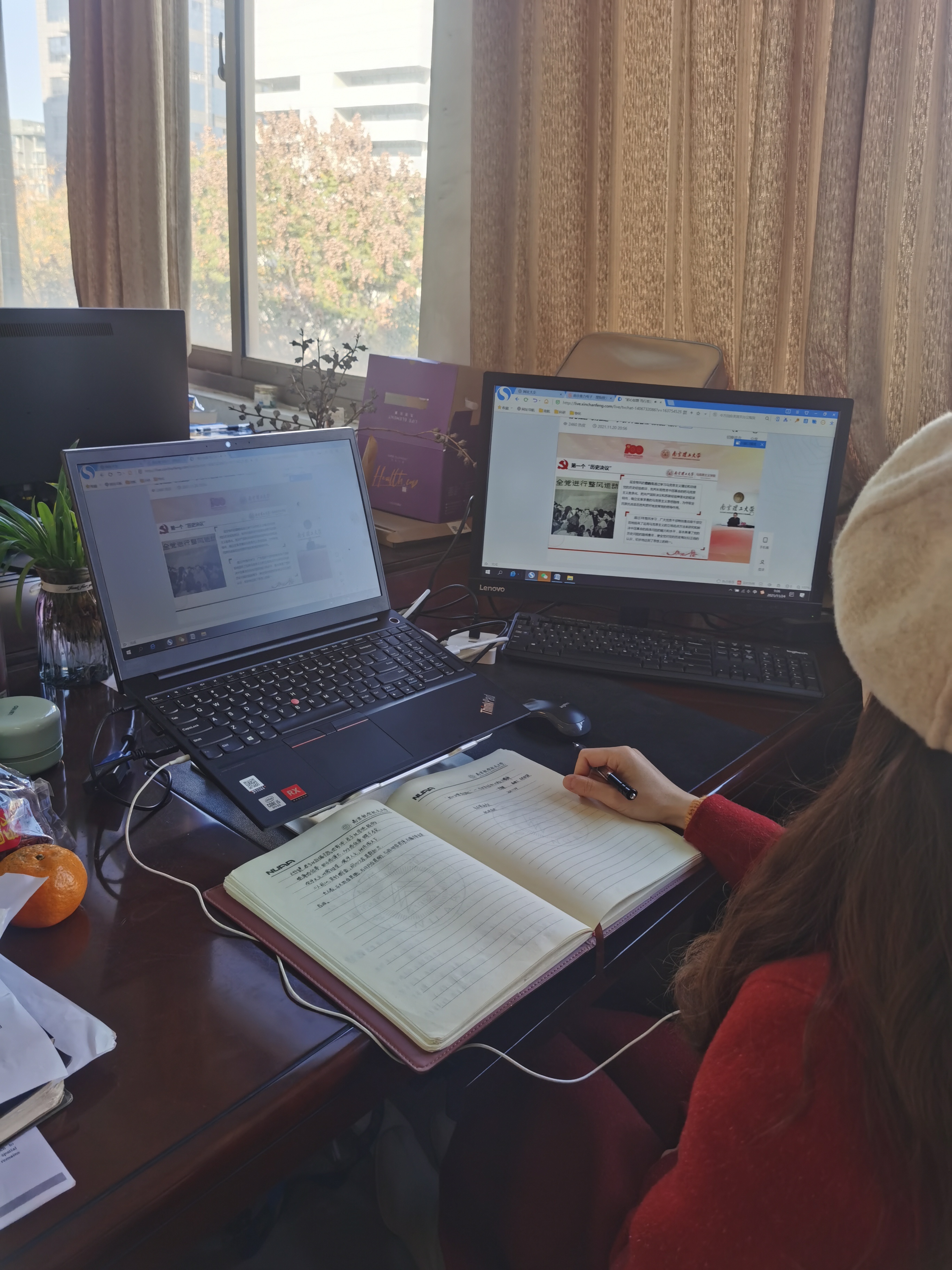 学院党委及师生各党支部密切关注党的十九届六中全会动态,11月24日分别以线上线下、集体及自学等学习方式收听收看专题党课《初心如磐 笃行致远——学习六中全会和<决议>精神》,学院党委书记石勇也受邀为教工党支部传达解读会议精神。大家纷纷表示,要将会议精神贯彻落实到实际工作中,埋头苦干、勇毅前行,自觉把学习成效转化为学习工作的动力;提高政治站位,强化责任担当,困难面前携起手来,凝聚合力共克时艰。