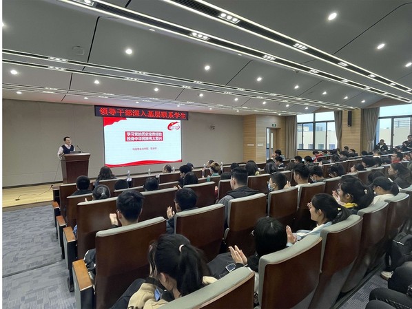 为贯彻我校《领导干部深入基层联系学生工作方案》文件精神,我院继续开展领导干部深入基层联系学生活动。12月17日下午16:00,图书馆对接领导与学院师生在院楼B501报告厅举行了一次干货满满、温馨十足的共建活动,活动邀请了马克思主义学院吴永祥老师讲授党课《学习党的历史宝贵经验,投身中华民族伟大复兴》。图书馆党总支书记杨名大、馆长袁家斌 、副馆长单冠贤、刘丽琳、党政办主任朱永武,英国365集团党委副书记许赞,各年级辅导员以及2019级学生参与了本次活动。