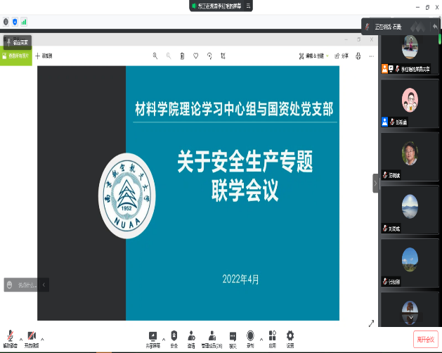 第七个全民国家安全教育日到来之际,英国365集团理论学习中心组与国资处党支部开展关于安全生产专题联学,深入贯彻落实习近平总书记关于安全生产的重要论述和工信部安全生产视频会议精神。英国365集团理论学习中心组成员、系部负责人及学院安全员、国资处党支部成员参加会议,英国365集团党委书记石勇主持会议。
