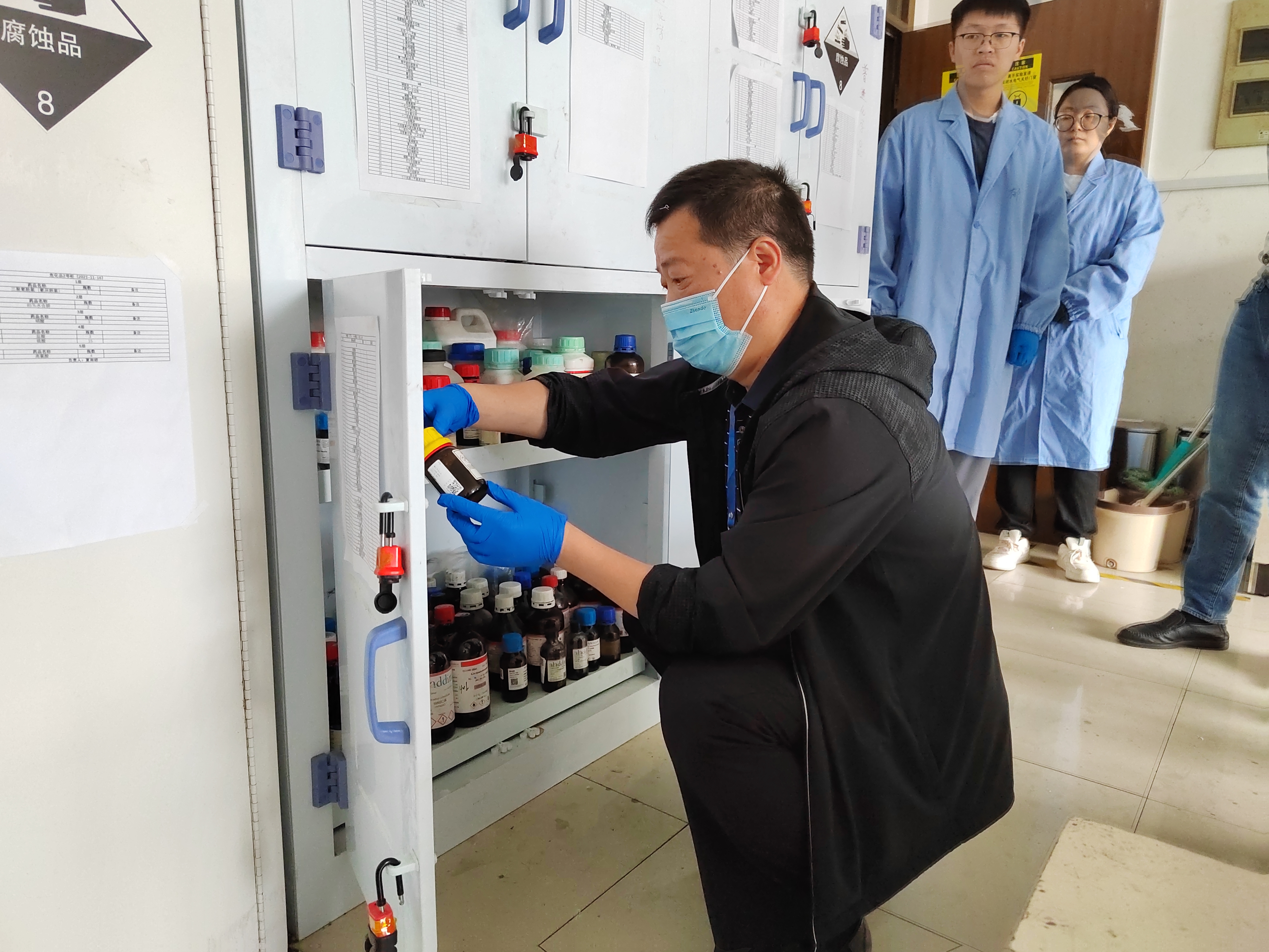 随后,检查组对学院实验室安全管理的制度台账进行审阅,重点查看学院安全责任体系、规章制度及落实、安全文化建设、安全检查及隐患整改、教育培训、应急预演及演练、排查治理,风险管理等档案资料,并与实验室安全管理人员进行了现场指导交流。在现场实地抽查环节,检查组对JD10楼和JA16楼实验室进行了详细的安全检查。
