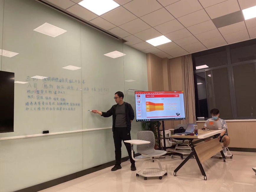 交流会以回望历史上的今天开篇,石勇以中国驻南斯拉夫大使馆不幸被轰击的历史事件,告诫学生勿忘国耻,充分调动起学生们的爱国情怀,青年当自强,奠定了昂扬向上的氛围。紧接着石勇将《大学》中的三纲八目巧妙地与南航的校训、校风相联系,借此深入浅出地阐述了“大学之道与南航精神”。南航精神是一辈辈南航人的坚守,“志在长空牧群星”,矢志不渝、追求卓越。