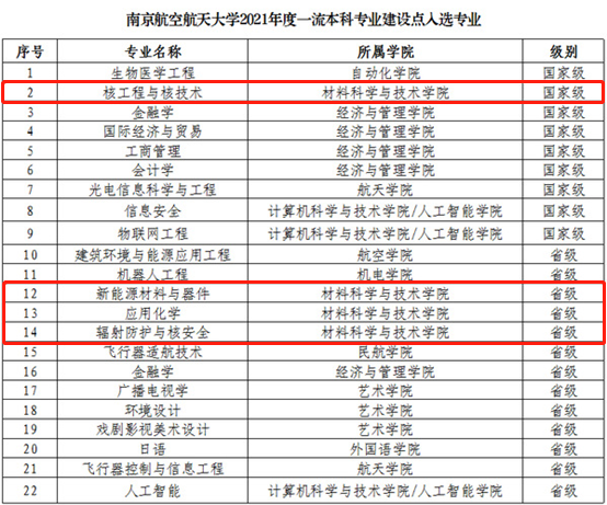 此前,在教育部公布的2021年国家级和省级一流本科专业建设点名单中,核工程与核技术专业还顺利获批国家级一流本科专业建设点。截至目前,我院五个本科专业中,已有两个国家级一流专业建设点(材料科学与工程、核工程与核技术),其余三个均为省级一流专业建设点(新能源材料与器件、应用化学、辐射防护与核安全),学院的专业建设工作取得新的突破。