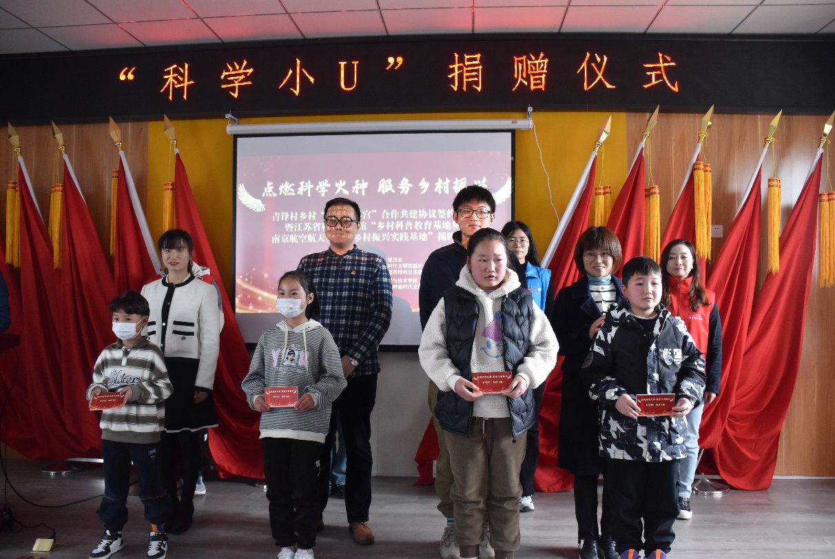 同时,江苏省科技馆与365上市公司官网向青锋村小朋友捐赠了“科学小U”科普视频;青锋村党总支书记徐大春为江苏省科技馆科普工作者代表刘艳授“科普进乡村”党员先锋队旗,为365上市公司官网志愿服务队代表李剑超授“乡村振兴”志愿服务队旗。