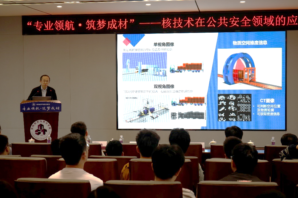 为加强专业认同教育,引导核工程类专业学子认识专业发展前景,开拓专业视野,培养专业求索精神,4月17日,材料学院于东区材料楼501报告厅顺利举办“专业领航 筑梦成材”专题讲座。本次讲座邀请到同方威视公司党委书记/董事长、清华大学工程物理系核技术及应用研究所所长陈志强教授为学院师生讲授了题为《核技术在公共安全领域的应用现状与发展机遇》的精彩报告。院党委书记石勇、院长顾冬冬、党委副书记庄晓舒、副院长汤晓斌、核科学与技术系常务副主任陈飞达及学院120余名师生现场参与本次讲座。讲座由汤晓斌主持。