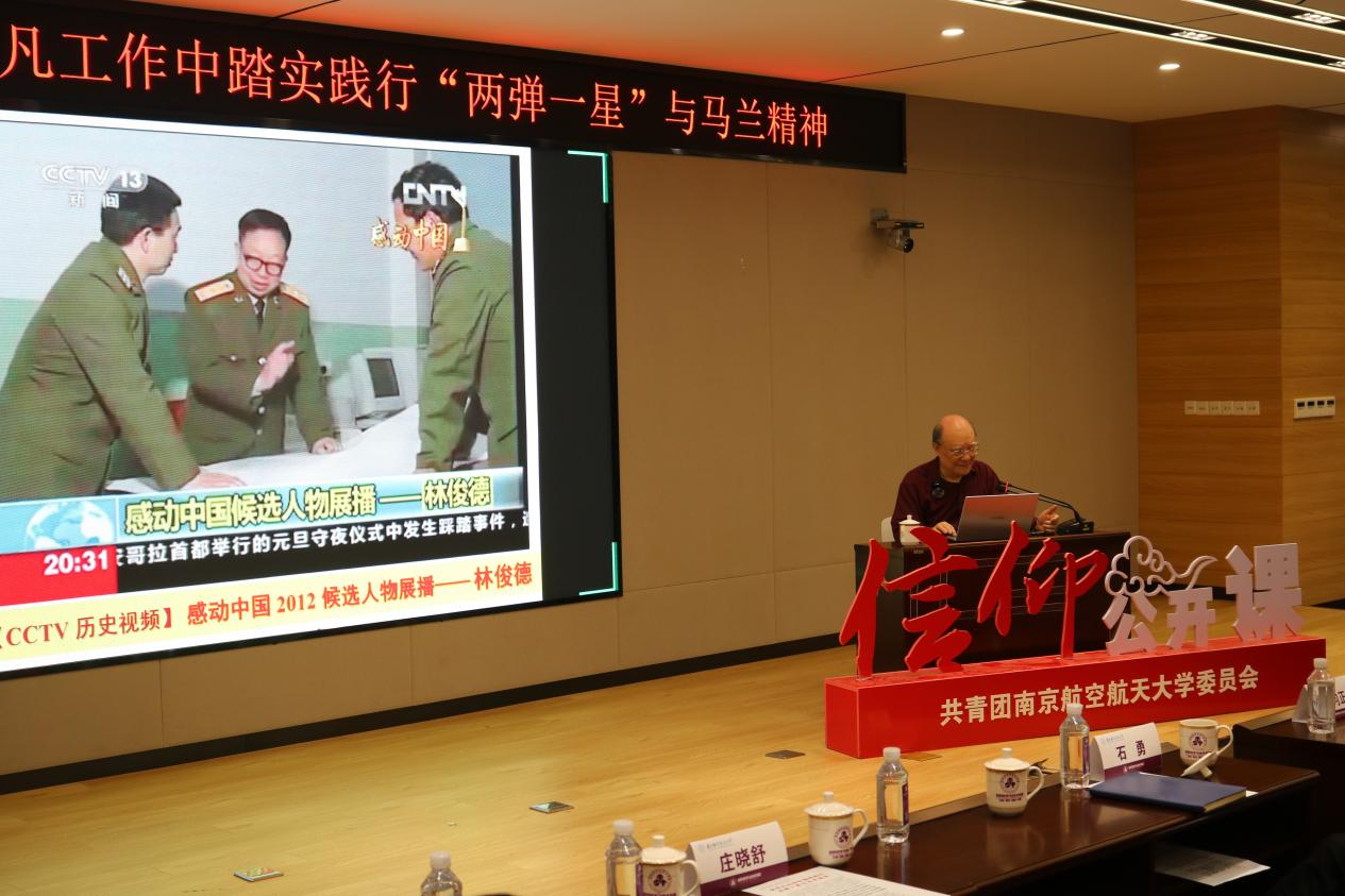 郑钧正老师以我国核科学与技术的发展历程为切入点,阐述了核事业对国家发展的重大战略意义,深情讲述23位“两弹元勋”以及核试验部队官兵用智慧和生命谱写了“艰苦奋斗,干惊天动地事,无私奉献,做隐姓埋名人”这一马兰精神。着重讲述了“两弹一星”元勋、2012感动中国十大人物林俊德院士扎根新疆罗布泊戈壁大漠52年,参加了我国全部45次核试验任务,矢志报国、勇挑重担、刻苦攻关、淡泊名利、献身国防的先进事迹。