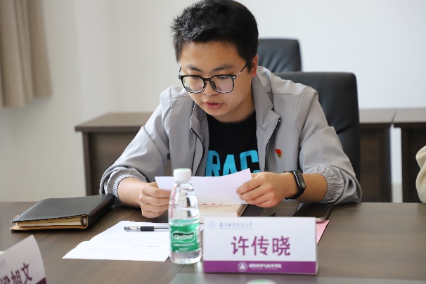 来自两个学院的学生党员代表梁旭文、许传晓结合自身学习成长经历,分别围绕理论学习感悟、马兰精神的现实意义、航天精神的具体内涵等分享了自身心得体会,他们一致表示,作为青年党员,应当加强理论学习,练就自身本领,以国家战略需求为牵引,不断进行科研攻关,把论文写在铸造大国重器的过程中,为建设航空航天民航特色鲜明的世界一流大学贡献材料智慧与航天力量。