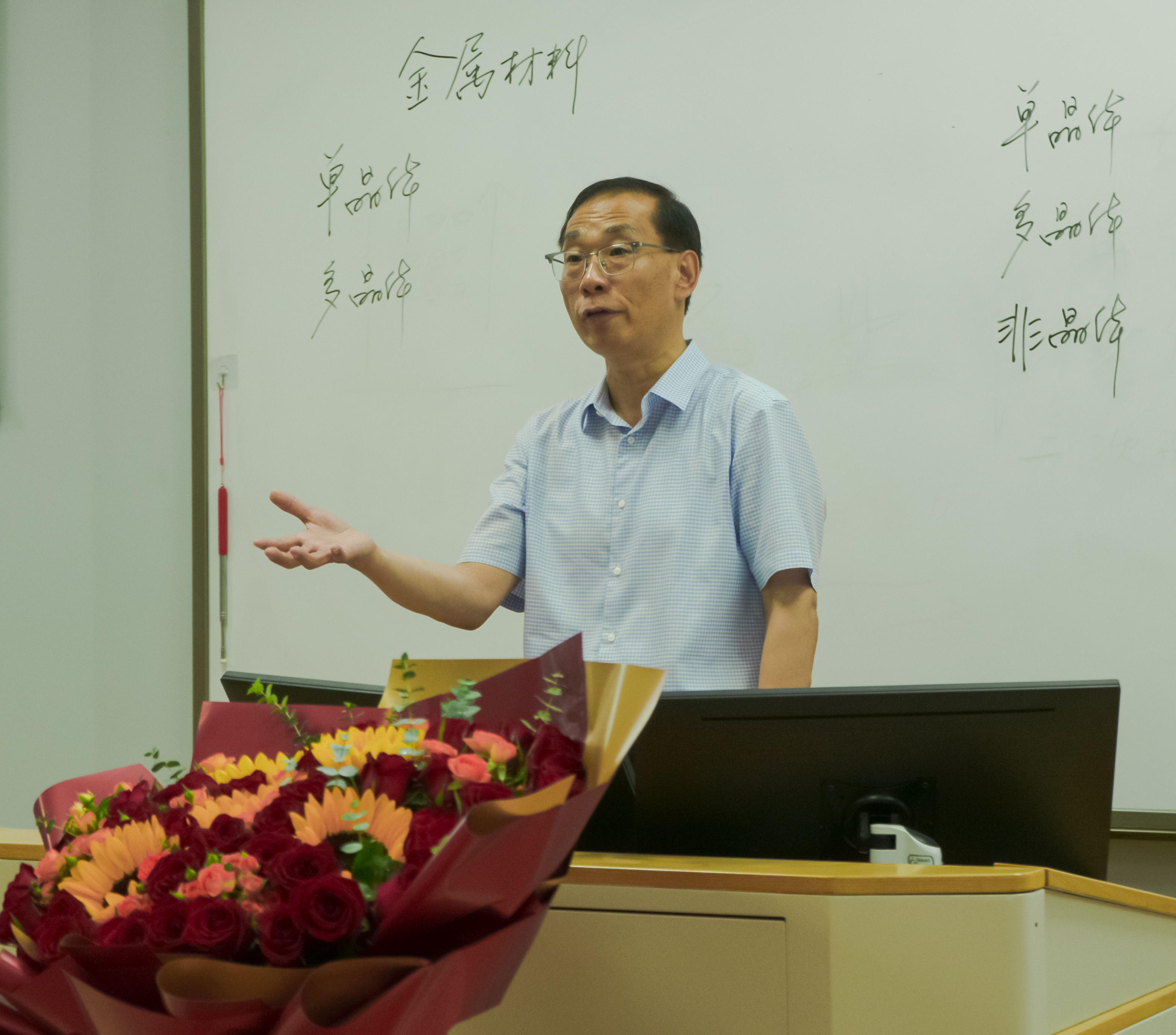 陶杰教授表达了对学院、对教育事业、对材料科学基础理论研究的真挚热爱和执着追求,为学院取得的成就感到骄傲。同时,陶杰教授对在座的师生送出寄语,希望“三尺讲台,就是我们教师的舞台!祝愿所有学生拓宽视野、勇于创新、勤于实践,提升学习和实践能力!”。