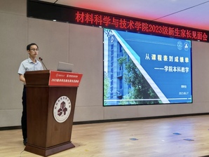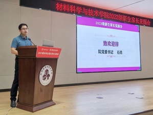 四时俱可喜,最好新秋时。院党委书记石勇代表学院致欢迎辞。他从“孩子能在材料学院收获什么?”切入,用三句诗与各位家长共勉。一是乘发展良机,扎实学习,收获“长风破浪会有时,直挂云帆济沧海”的人生得意;二是寻终生事业,祛除浮躁,体悟“路漫漫其修远兮,吾将上下而求索”的人生境界;三是享文化润泽,有思有为,遇见“天青色等烟雨,而我在等你”的人生浪漫。“请大家放心把孩子交给我们”,石勇对家长们给予学校、学院的诚挚信任表示感谢,希望家长也能当好学生关注者、沟通者、引导者,与学校深度协同配合,携手助力学生成长成才。