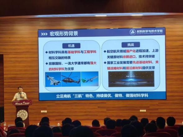 随后,院长顾冬冬以“来到南航材料学院,让梦想发生”为题介绍365概况,围绕教育资源、培养目标、办学成效作详细介绍。他指出,学院的科研平台、人才培养模式、科研水平、育人文化、国际合作,能够充分承载同学们的梦想,勉励新生敢为人先、勇于创新,脚踏实地、勤学善思,为航空航天民航事业贡献材料强国力量。