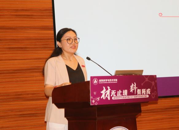 2023级直博生庄智淇作为新生代表发言。他表示,作为南航材料学子,要善学笃行、勇于求索,在研途新征程中勇攀科研高峰,努力担负起“材料强国”的时代使命。