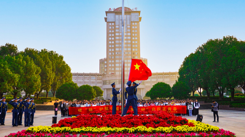 10月16日,是中国第一颗原子弹爆炸成功59周年纪念日,材料学院在将军路校区国旗广场举行“硬‘核’护航中国梦,实‘材’启程正青春”国旗下的思政课暨“马兰精神”主题教育。材料学院党委副书记庄晓舒、本科生辅导员陈士明、“马兰之声”团队成员和2023级全体本科生参加本次升旗仪式。