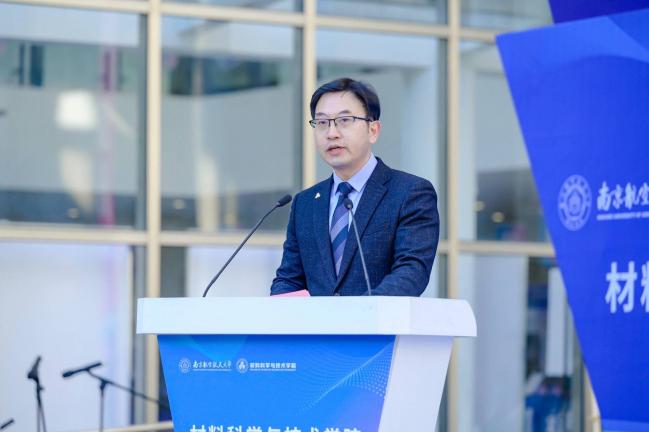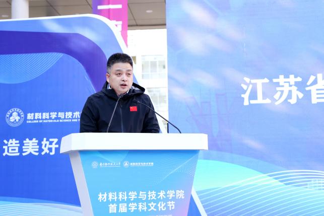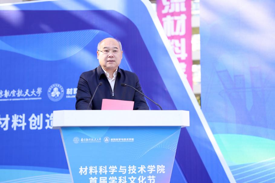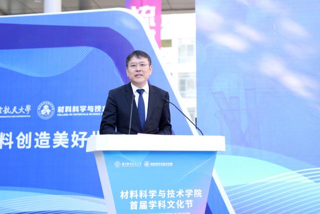 黄志球代表学校对与会领导嘉宾表示热烈欢迎,向关心南航发展、给予材料学院指导支持的校内外各界单位表示感谢,对材料科学学科进入ESI全球前1‰表示祝贺,他简要介绍了近年来学校在航空航天民航领域的办学成效,肯定了学院在人才培养、科学研究、服务国家重大需求等方面取得的成绩。他最后提出三点希望,一是坚持育人为根本,着力创建人才荟萃的材料学院,将学科资源优势转化为人才培养优势;二是坚持学科为龙头,聚力打造特色发展的材料学院,继续紧密围绕“三航”、发展“三航”,持续产出标志性前沿创新成果;三是坚持创新为动力,全力建设矢志一流的材料学院,始终聚焦服务国家重大战略需求,要有“三航急需”“国防急需”“时代急需”的响应度,更要统筹发展和安全两件大事。他鼓励学生以此次学科文化节为契机,感受学科魅力,爱上专业、爱上学习,树立专业自信,勇攀科学高峰。