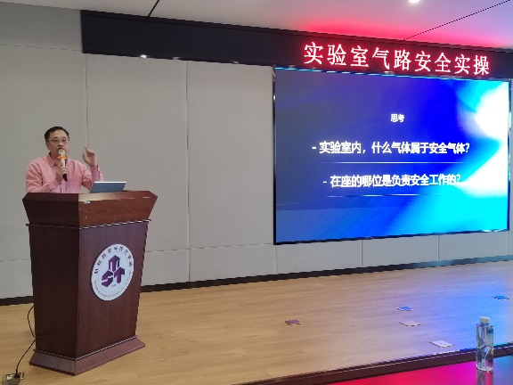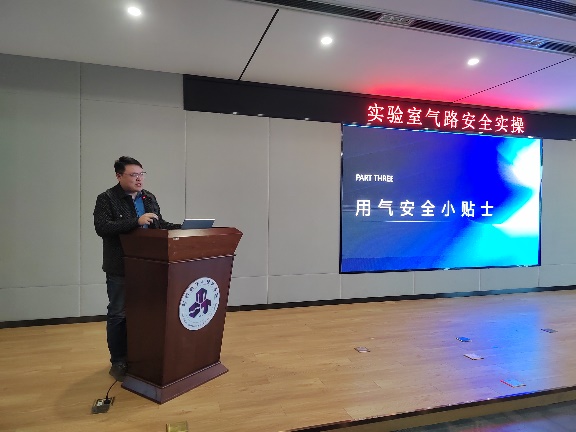深入贯彻落实习近平总书记关于安全生产的重要论述,进一步增强师生实验安全意识和技能,提升实验室安全管理能力和水平,12月7日,我院在D10号楼501会议室开展实验室气路安全实操培训。学院邀请南京诚创科技系统有限公司副总经理邱璟作专题培训报告,学院党委书记石勇主持,全院140余名师生参加了此次培训活动。