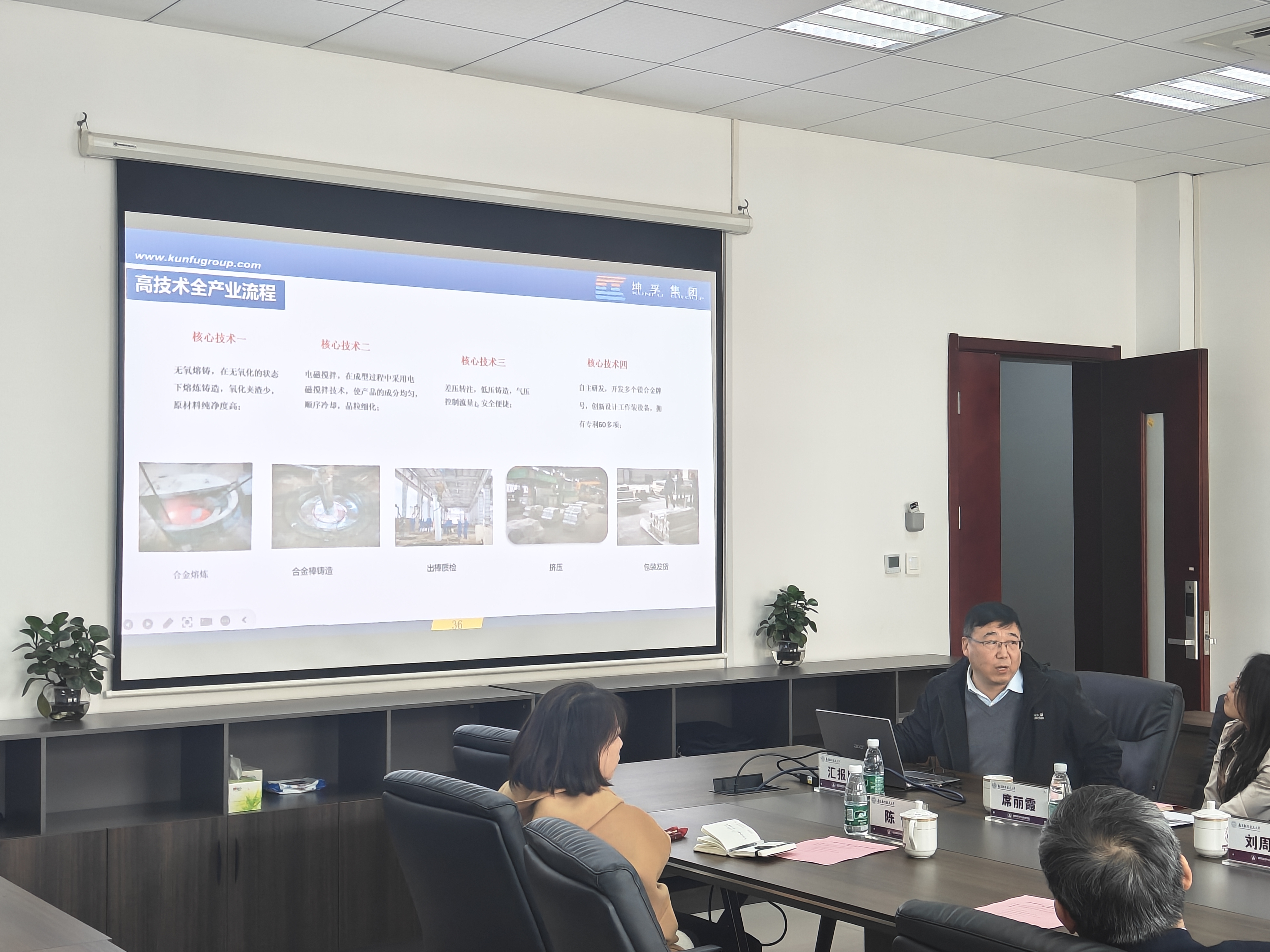 为深入推动产教融合,服务构建以企业为主体、产学研高效协同深度融合的创新体系,以高水平科创成果为新质生产力蓄势赋能,2024年3月7日下午,我院组织开展了与上海坤孚企业(集团)有限公司的技术对接交流活动。上海坤孚集团董事长石秉钧 、执行总裁于洪伟 、技术总监王铭君、总裁助理陈智等,学院党委书记石勇、专务刘周成、相关科研团队教师代表潘蕾、刘子利、席丽霞、刘春梅及院党政办、科研办相关人员参加活动。