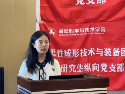 激光焊接与再制造研究生纵向党支部李悦、激光增材制造研究生纵向党支部陈涛、柔性成形技术与装备研究生纵向党支部周泽星分别“党员’三个扪心自问’-争做讲纪律、 守规矩、担当的表率” “强化纪律意识,践行党员使命”“知于心立于身化于行,用党规党纪校正思想和行动”为题分享党纪学习心得,从党纪学习的意义、方式和内容多方位展示了党支部党纪学习的深度和广度。