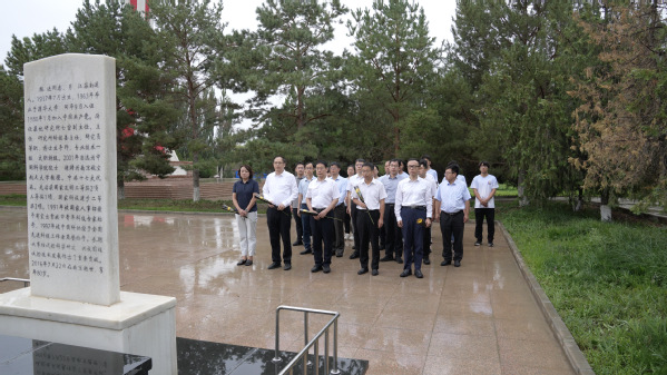 为缅怀先烈,调研团前往马兰烈士陵园为全体马兰英烈敬献鲜花,并在著名科学家、我校陈达院士墓前深切悼念,回顾陈达院士在基地和南航为我国教育科技人才事业无私奉献的一生,表达追思之情。