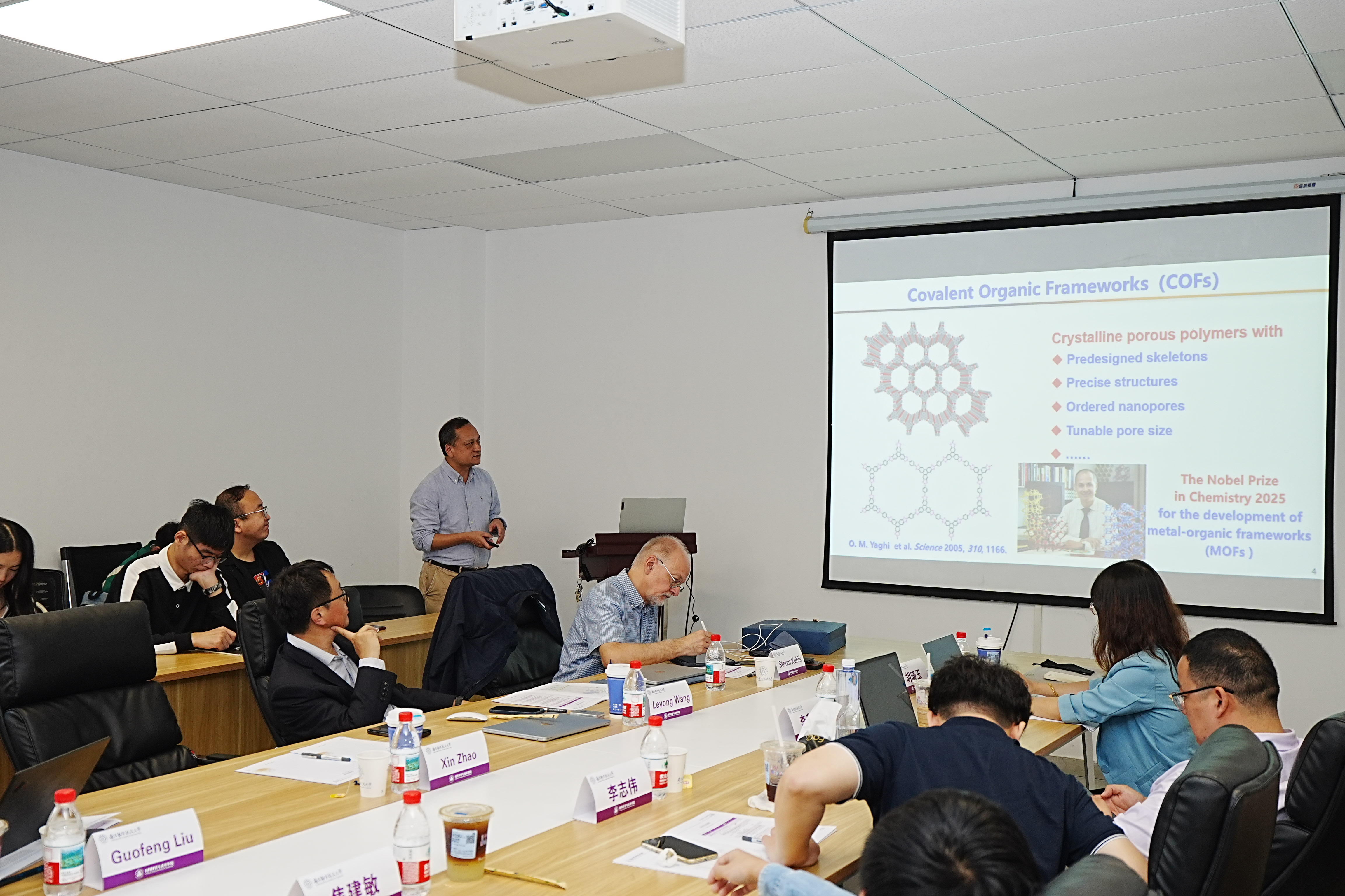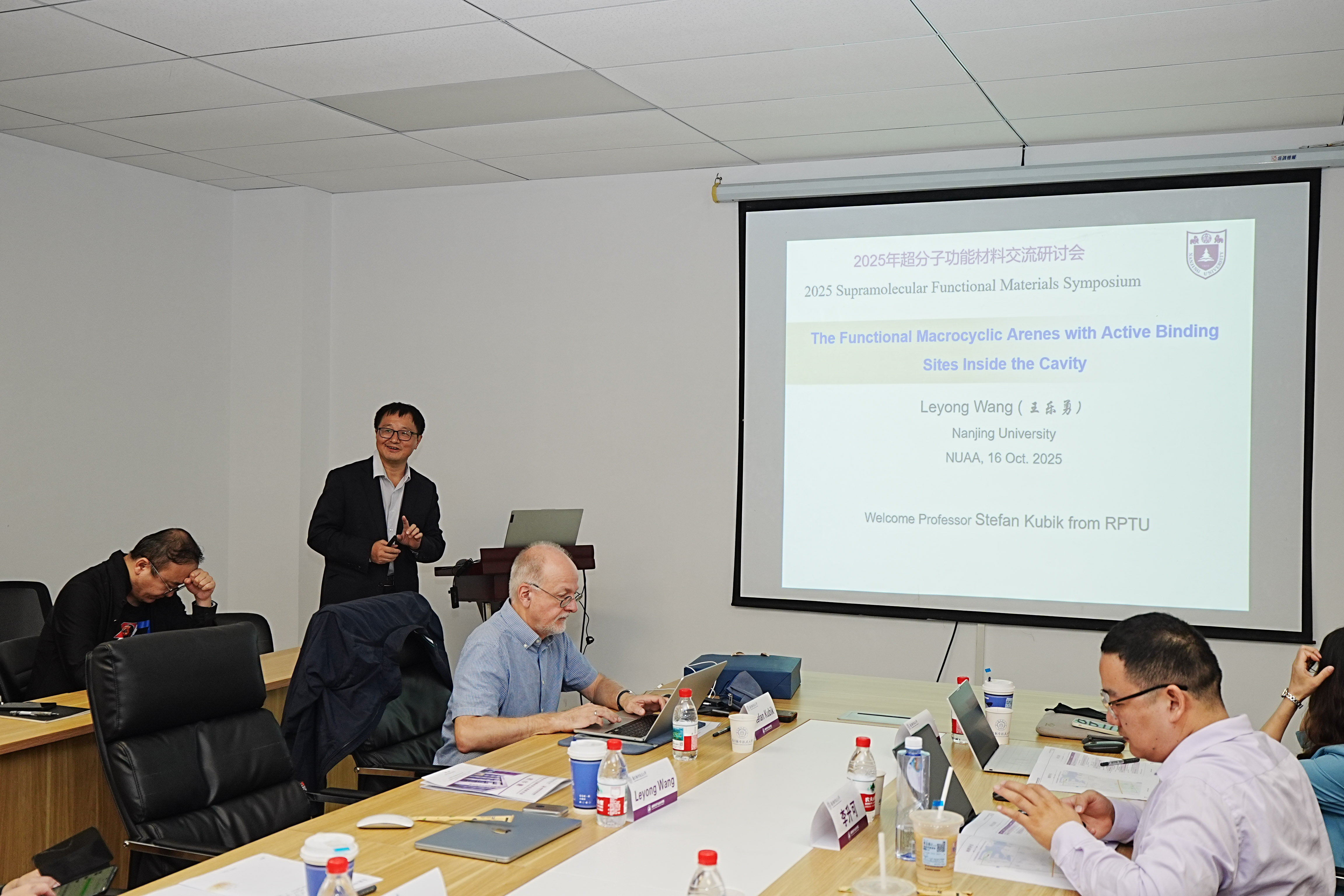 在学术报告环节,中德两国专家学者围绕超分子组装的调控机制、功能材料的精准构筑等核心议题展开了深入交流,系统分享了各自领域的最新研究成果,现场学术氛围浓厚。德国凯泽斯劳滕大学Stefan Kubik教授系统阐述了环肽分子在超分子识别中的创新性应用,其前沿研究引发了与会者的热烈讨论与深度互动。南京大学王乐勇教授详细介绍了具有空腔内活性结合位点的功能性大环芳烃在分子识别与催化反应中的潜在应用价值,为新型超分子功能材料的设计提供了重要思路;东南大学赵新教授则聚焦于共价有机框架材料的高效合成策略及其在储能与分离领域的实际应用前景,研究成果展现出显著的产业化潜力。此外,同济大学刘国锋教授、南通大学李升可教授、365上市公司官网王开亚副教授,以及江西师范大学青年教师李志伟、焦建敏、田雪琪等分别就超分子手性调控、新型芳烃合成方法、超分子纳米反应器构建等前沿方向作了专题报告,进一步拓展了会议的学术广度与研究深度。