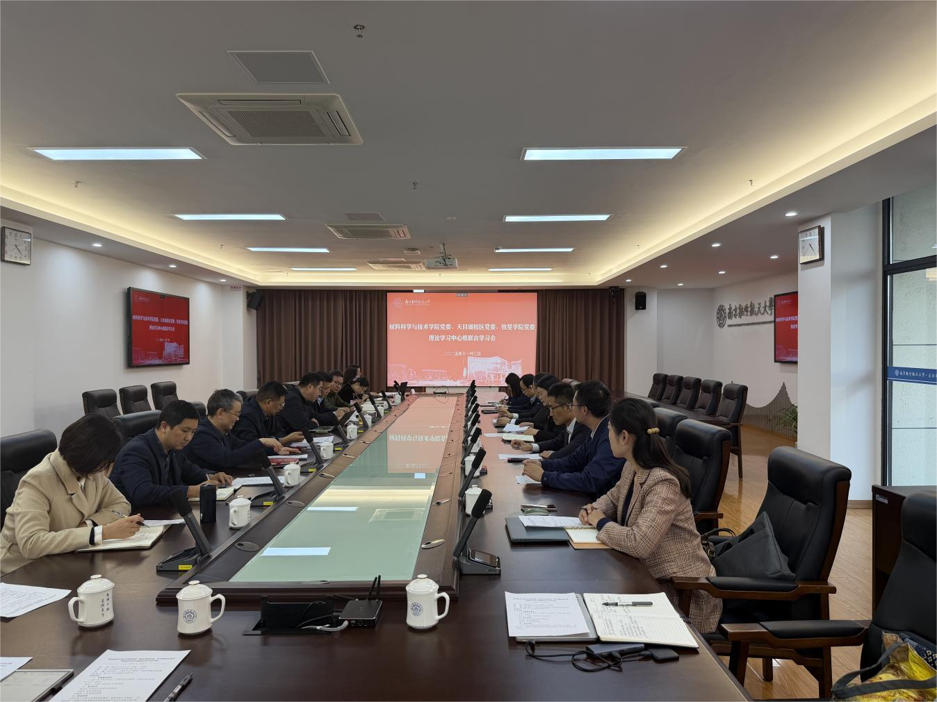 为深入学习贯彻党的二十届四中全会精神,11月3日下午,材料学院党委、牧星学院党委、天目湖校区党委以“深悟党的二十届四中全会精神,共谱高质量发展新篇”为主题,召开党委理论学习中心组联合学习会。三家单位党委理论学习中心组成员、部分相关内设业务机构负责人参加学习。会议由天目湖校区党委书记缪长宗主持。
